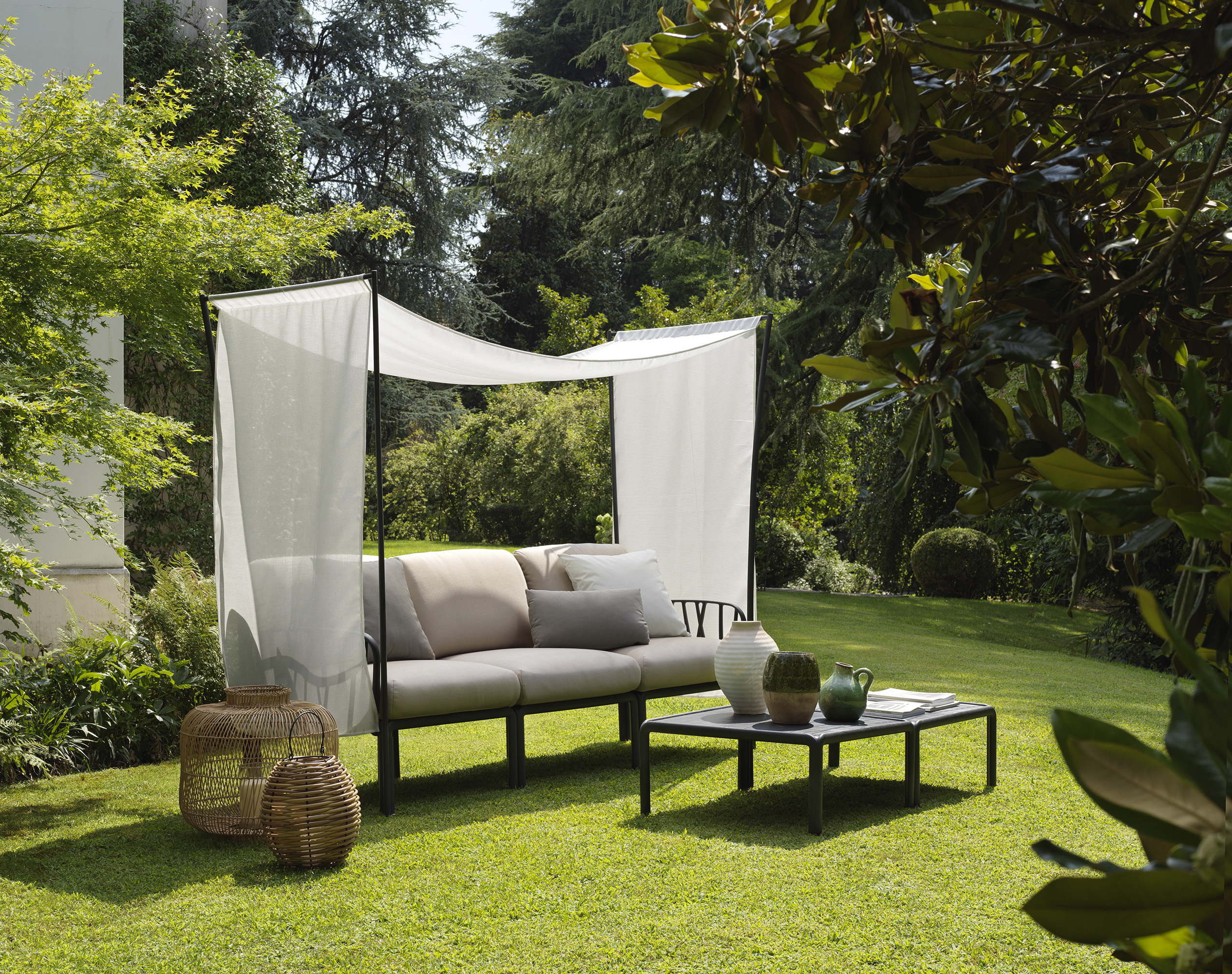 Projektanci NARDI zadbali o to, by baldachim idealnie komponował się z całą serią mebli Komodo, tworząc spójną i harmonijną przestrzeń wypoczynkową. Jego minimalistyczna, ale zarazem wyrafinowana forma doskonale wpisuje się w nowoczesne aranżacje ogrodowe i tarasowe, nadając im wyjątkowego charakteru. Włoska precyzja widoczna jest w każdym detalu, od solidnej konstrukcji po starannie dobrany materiał tkaniny, odpornej na blaknięcie i rozdarcia. To gwarancja, że inwestujesz w produkt, który będzie cieszył oko i służył przez wiele sezonów, zachowując swój pierwotny urok.