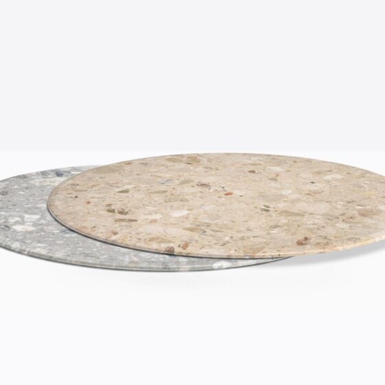Różnorodne płatki, ziarna i odłamki najcenniejszych marmurów są umiejętnie mieszane z wysokiej jakości żywicami, certyfikowanymi i przetestowanymi pod kątem bezpieczeństwa w kontakcie z żywnością, aby uzyskać najwyższej jakości , wszechstronne i zaawansowane technicznie blaty. Kompozytowe blaty marmurowe, dostępne w różnych odcieniach kolorystycznych i o różnych wielkościach cząsteczek, dodadzą każdemu wnętrzu odrobinę wyrafinowania. Dostępne w różnych wykończeniach, kształtach i rozmiarach, z płaską lub stępioną krawędzią, o grubości 12 mm. Blaty kompozytowe Pedrali sprawdzą się idealnie jako blat ogrodowy do stolików restauracyjnych w hotelach, restauracjach, kawiarniach czy barach bistro.