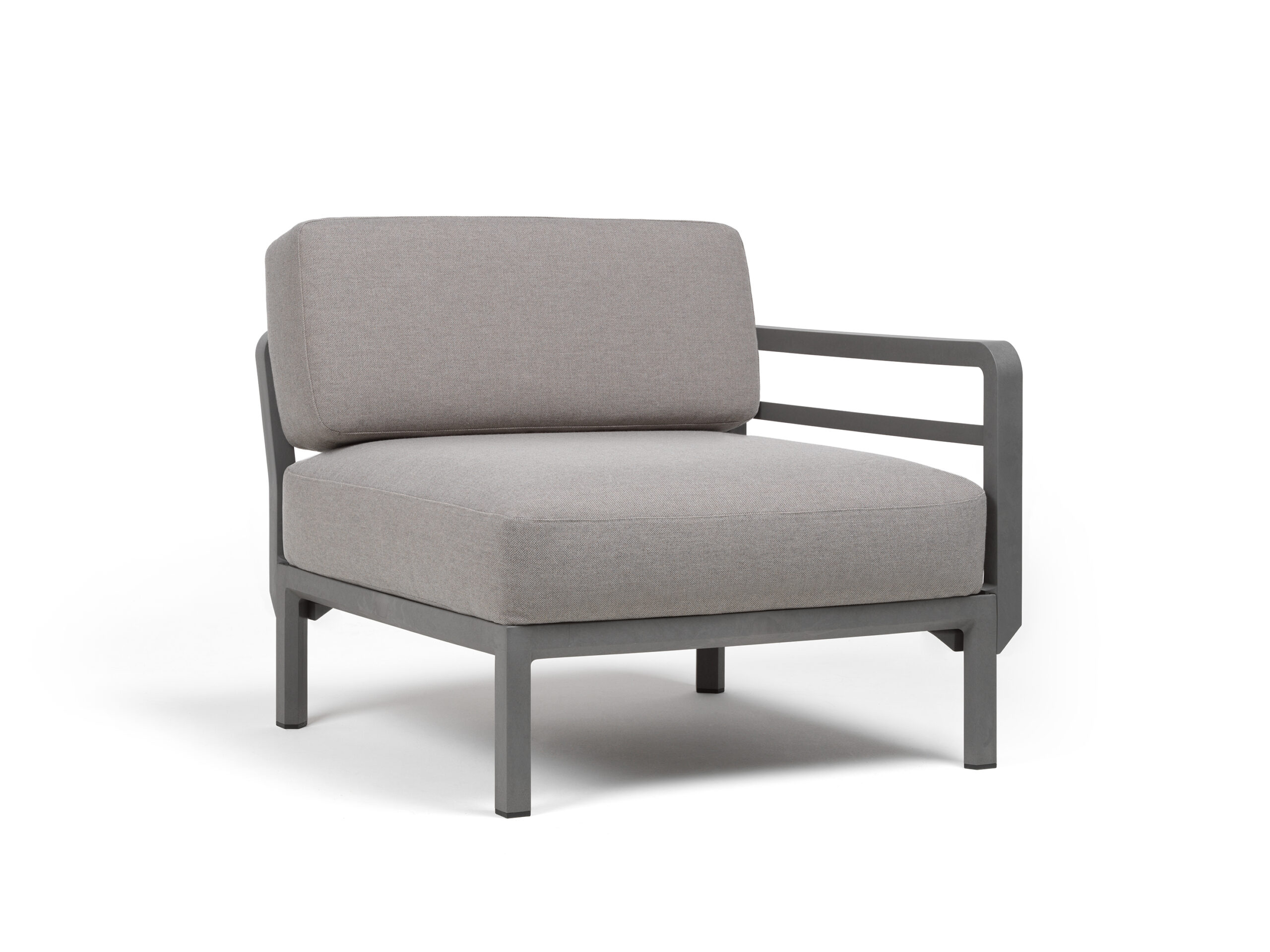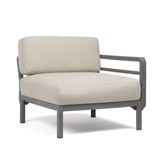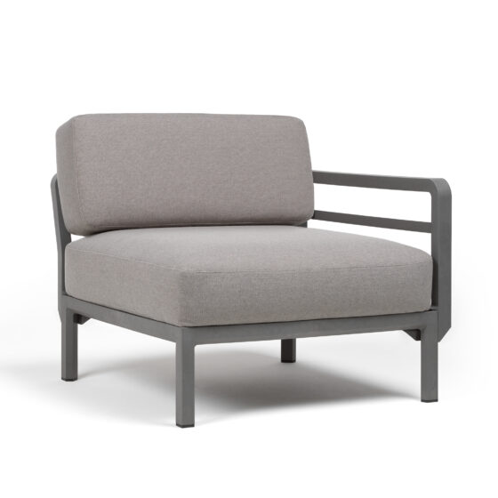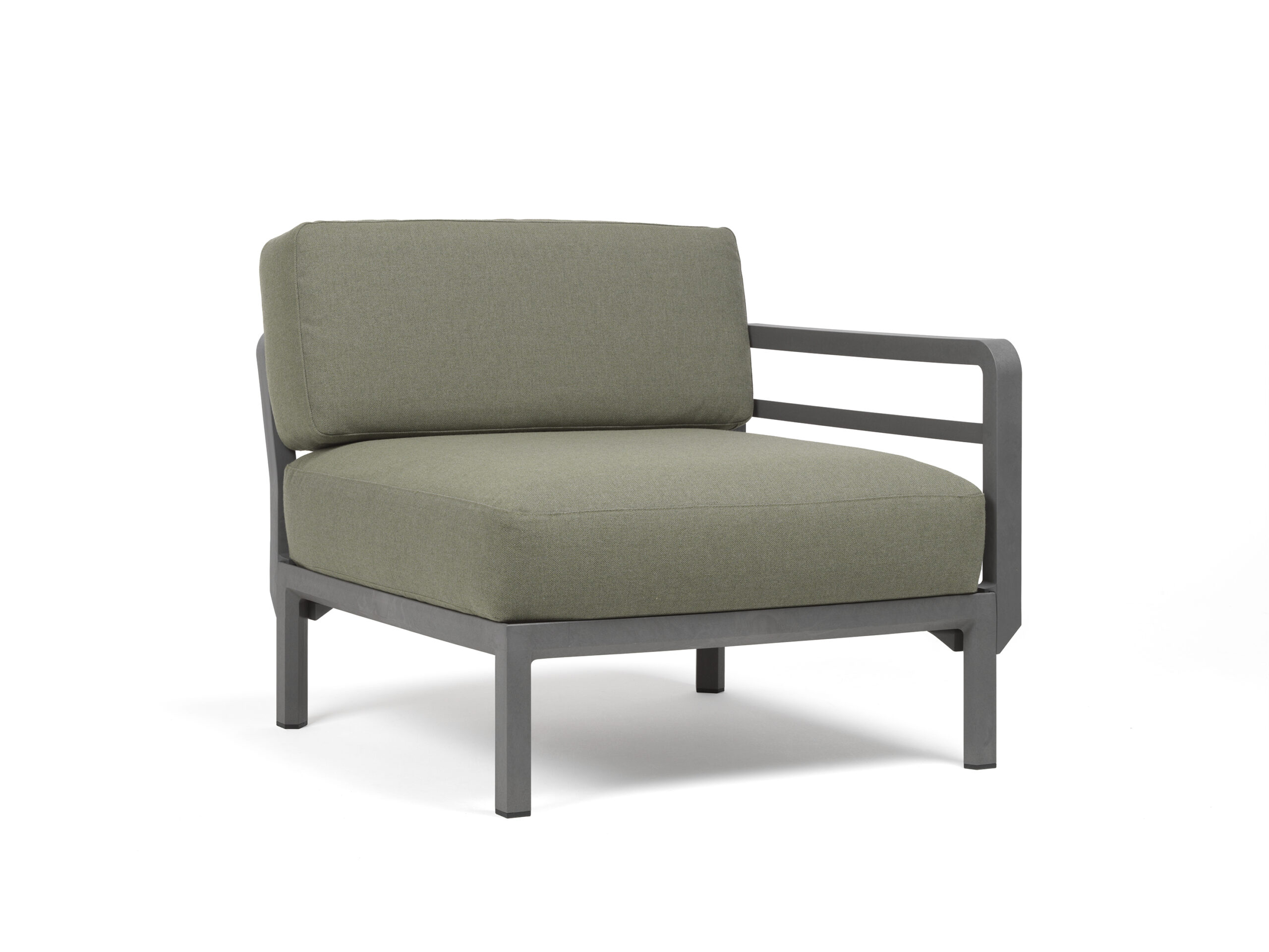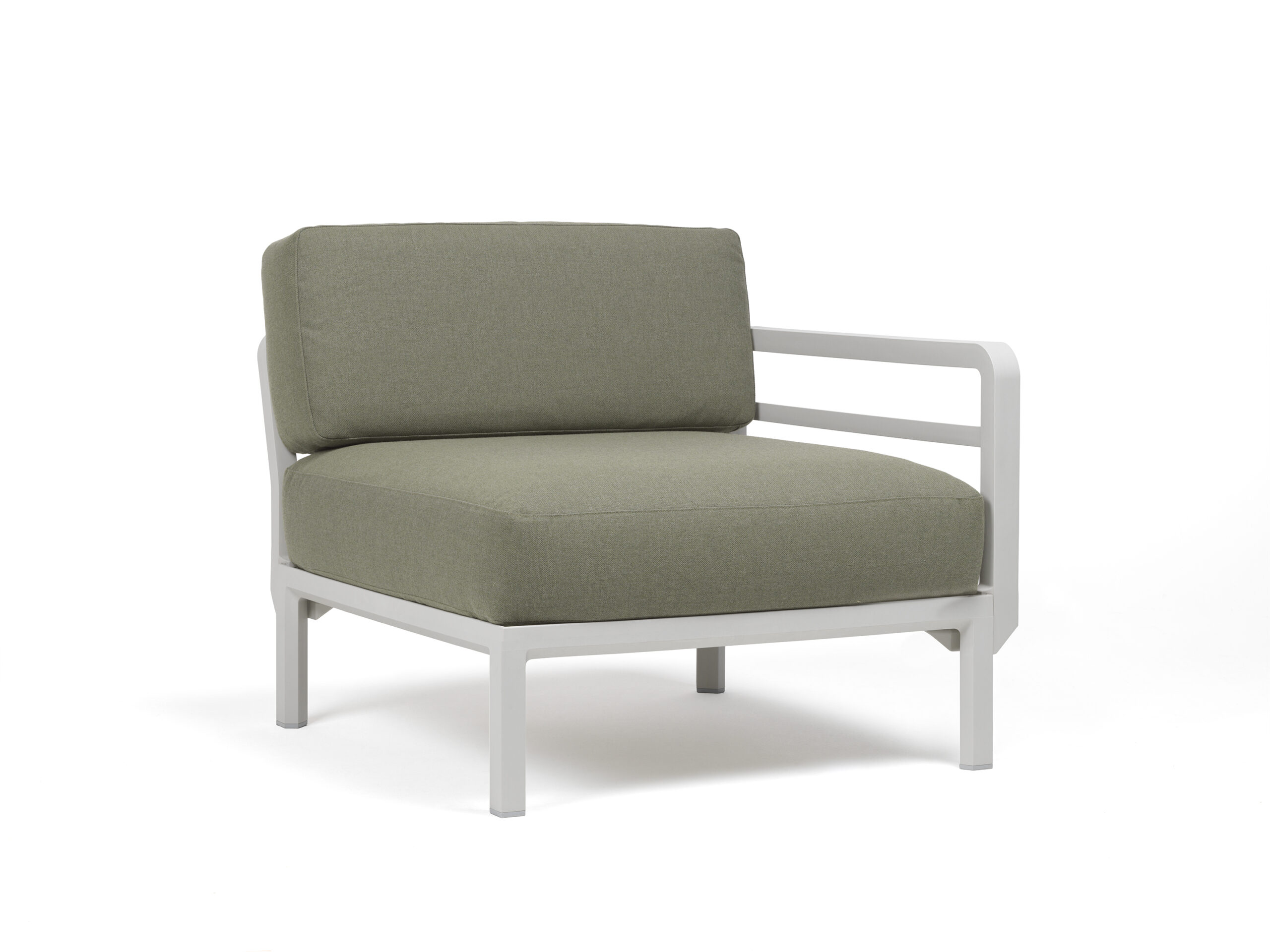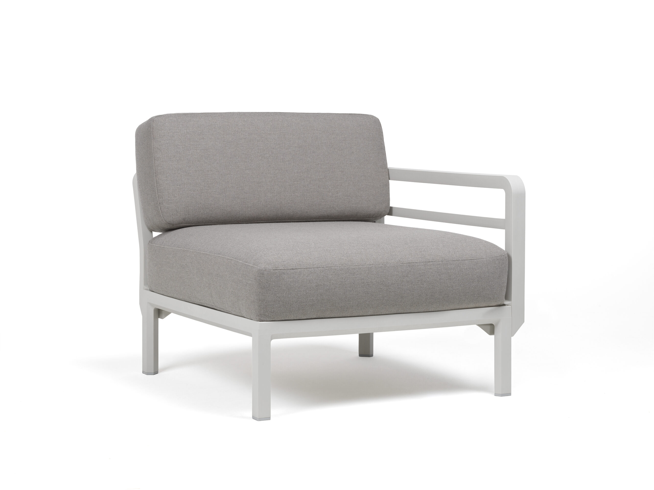 Uwagi: antypoślizgowe nóżki, matowe wykończenie, zdejmowane poduszki, może być częścią modułowej sofy ogrodowej Komodo.