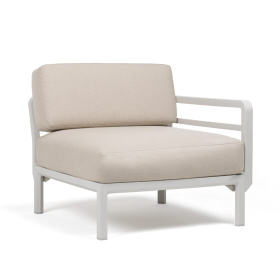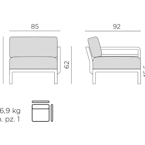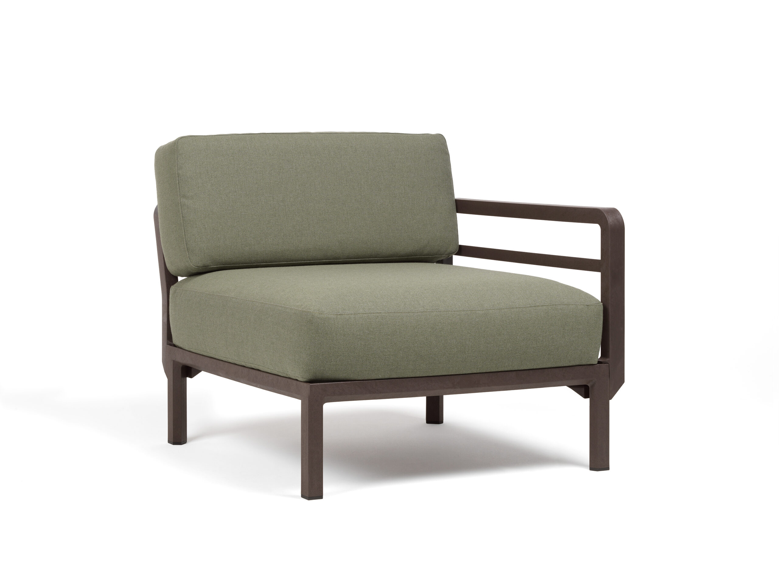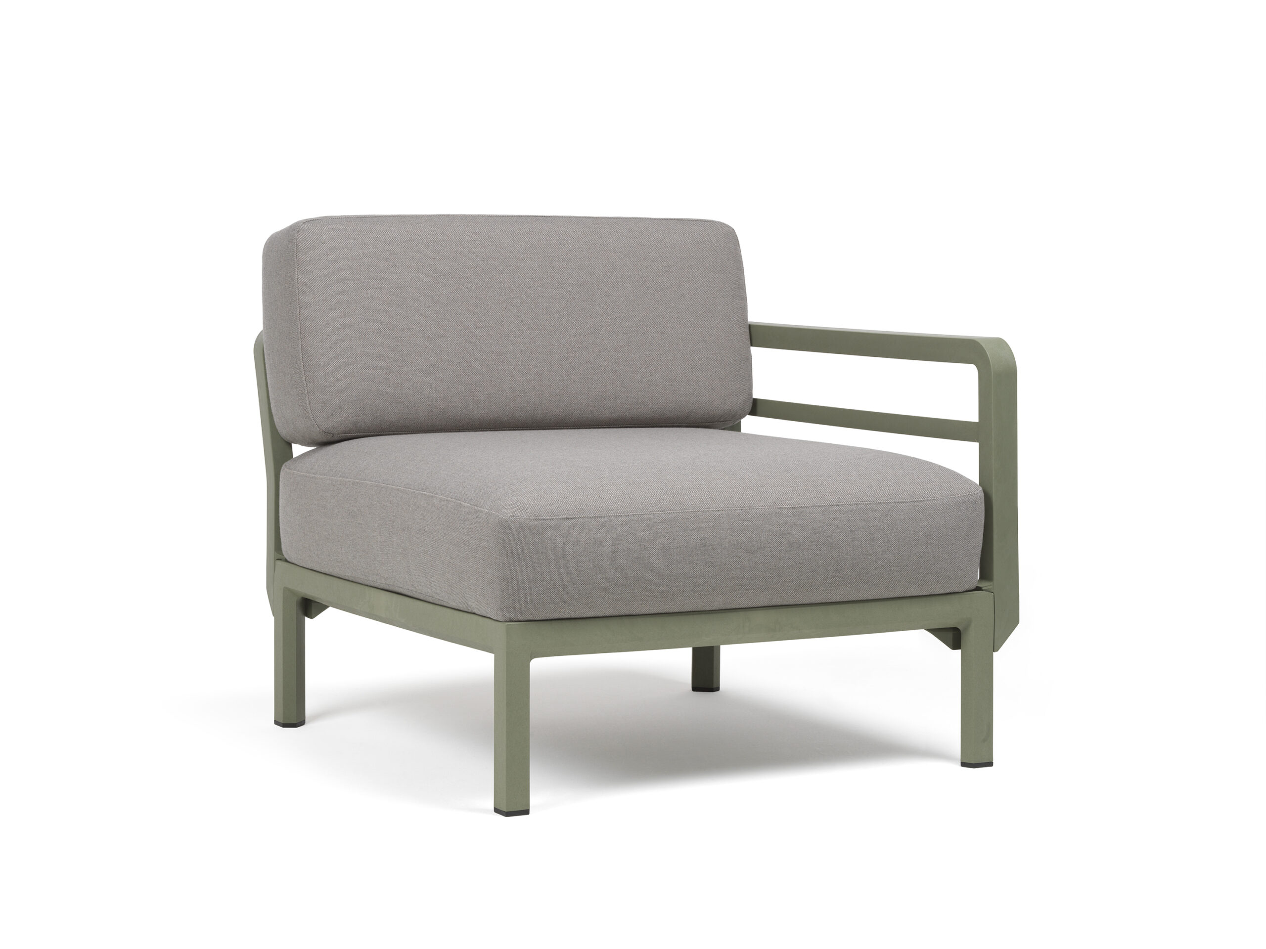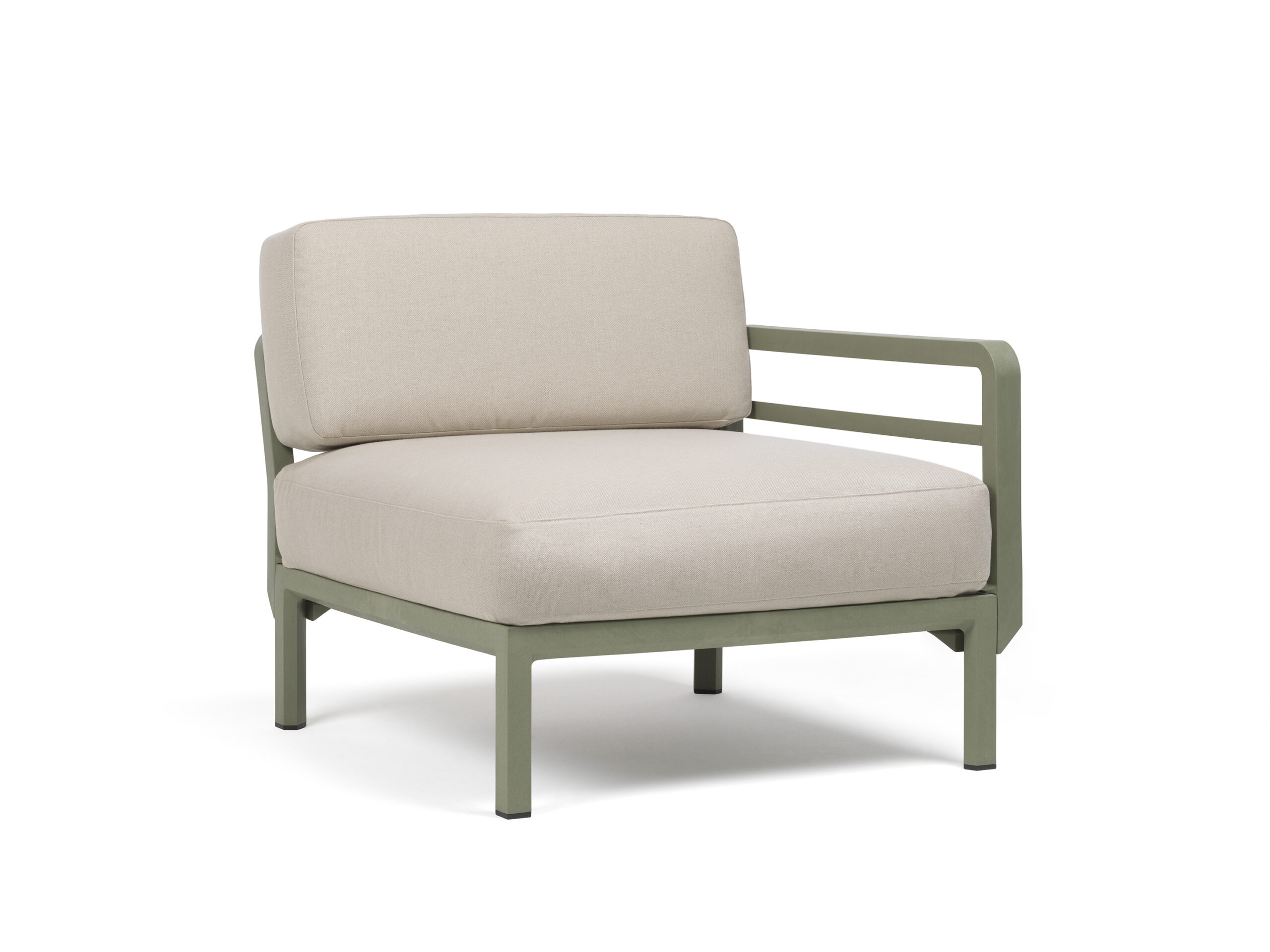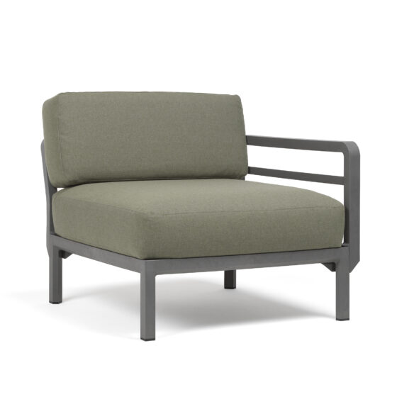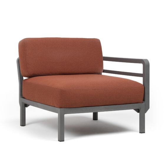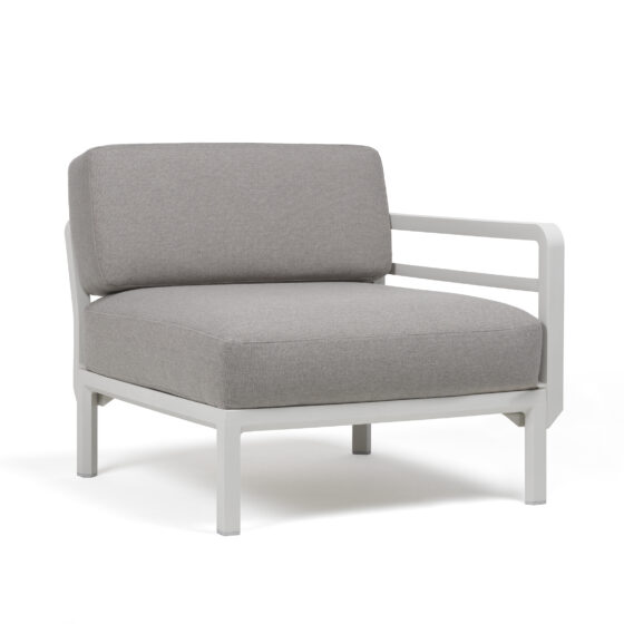 Uwagi: antypoślizgowe nóżki, matowe wykończenie, zdejmowane poduszki, może być częścią modułowej sofy ogrodowej Komodo.