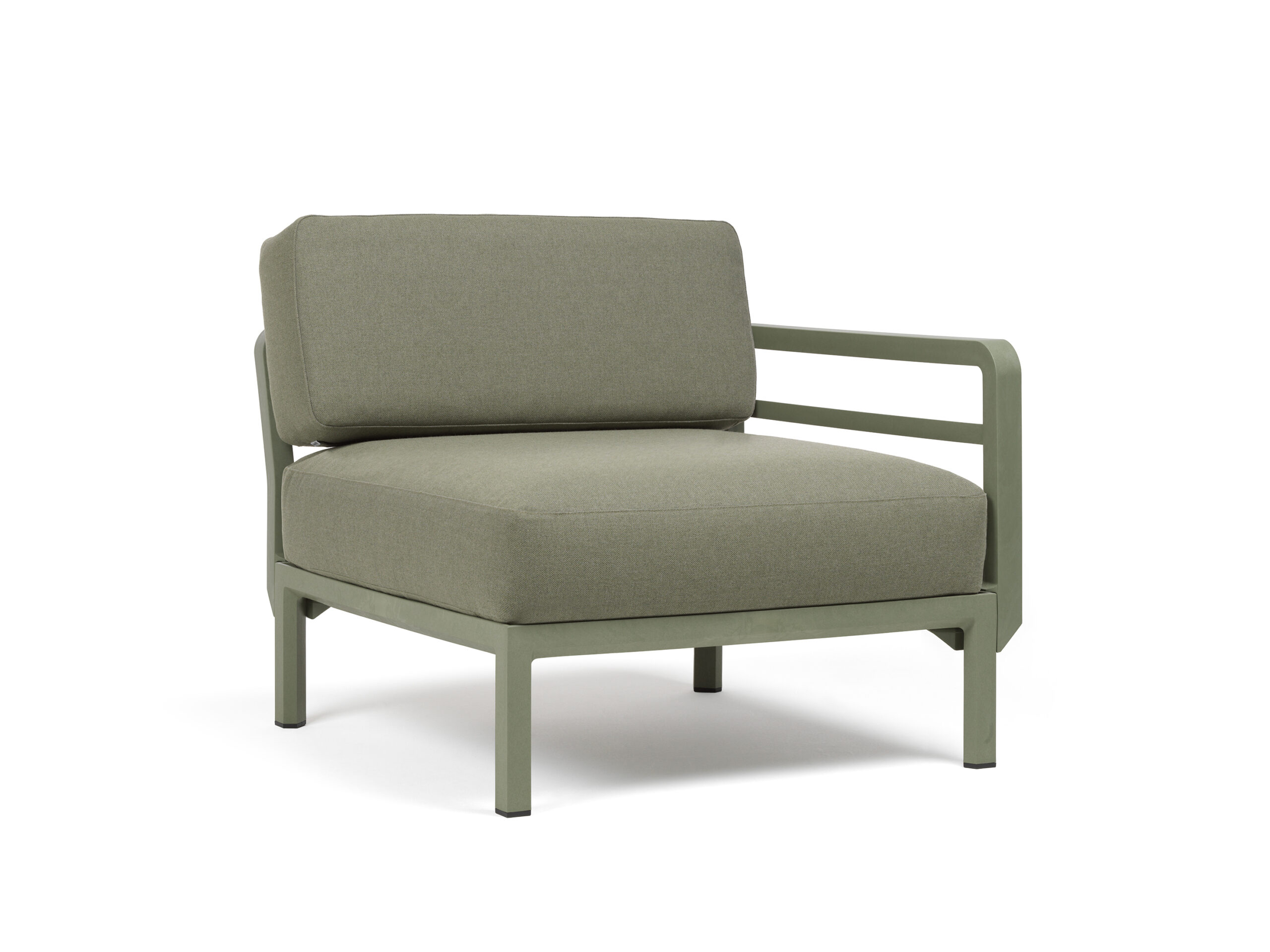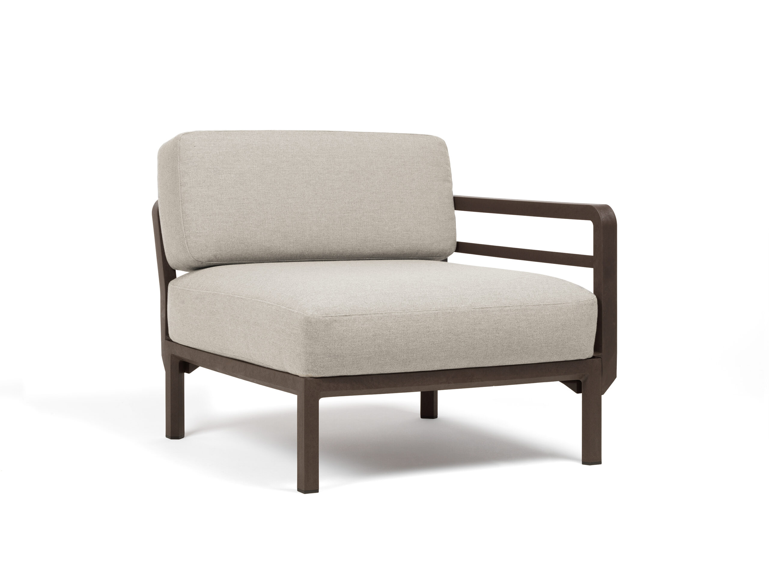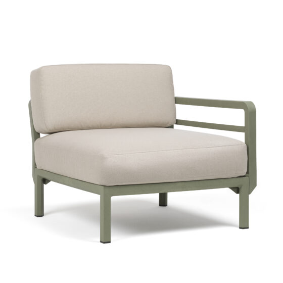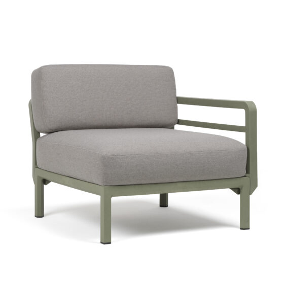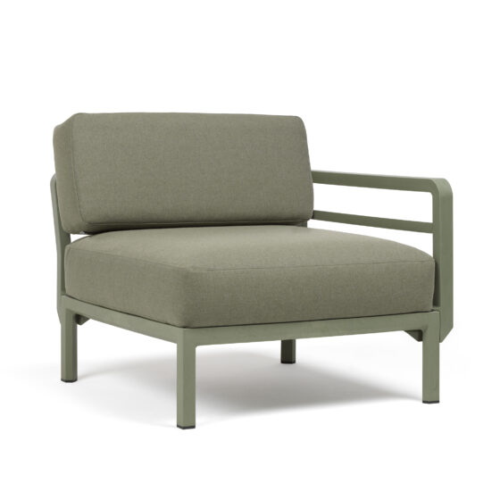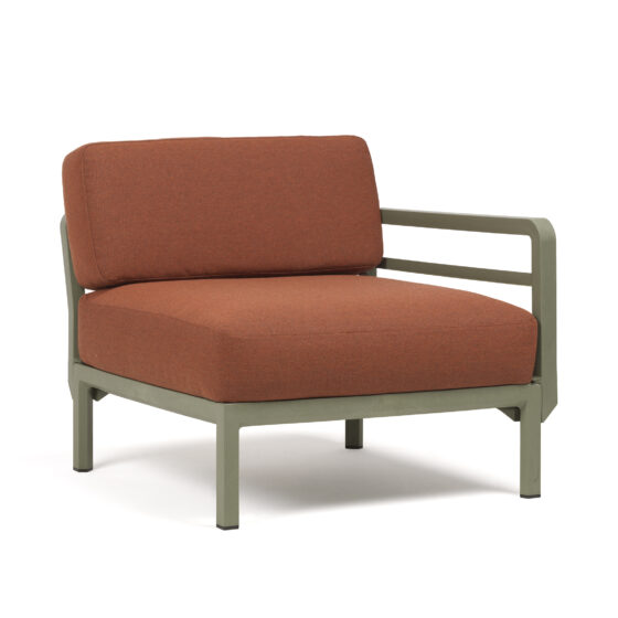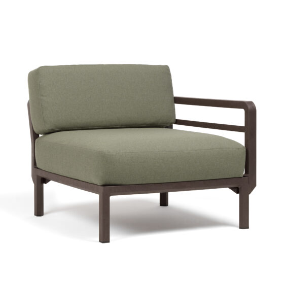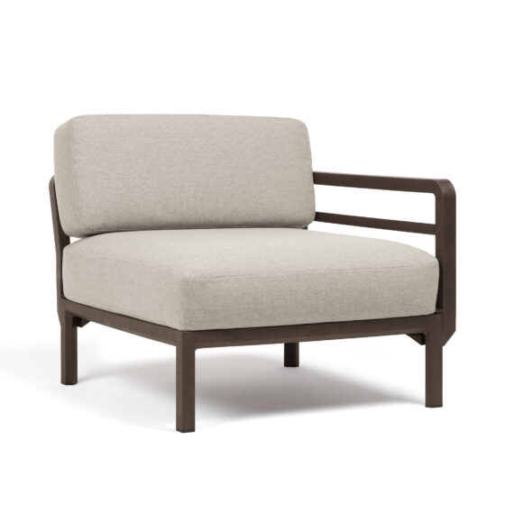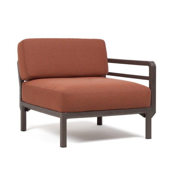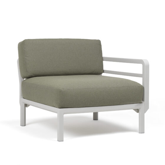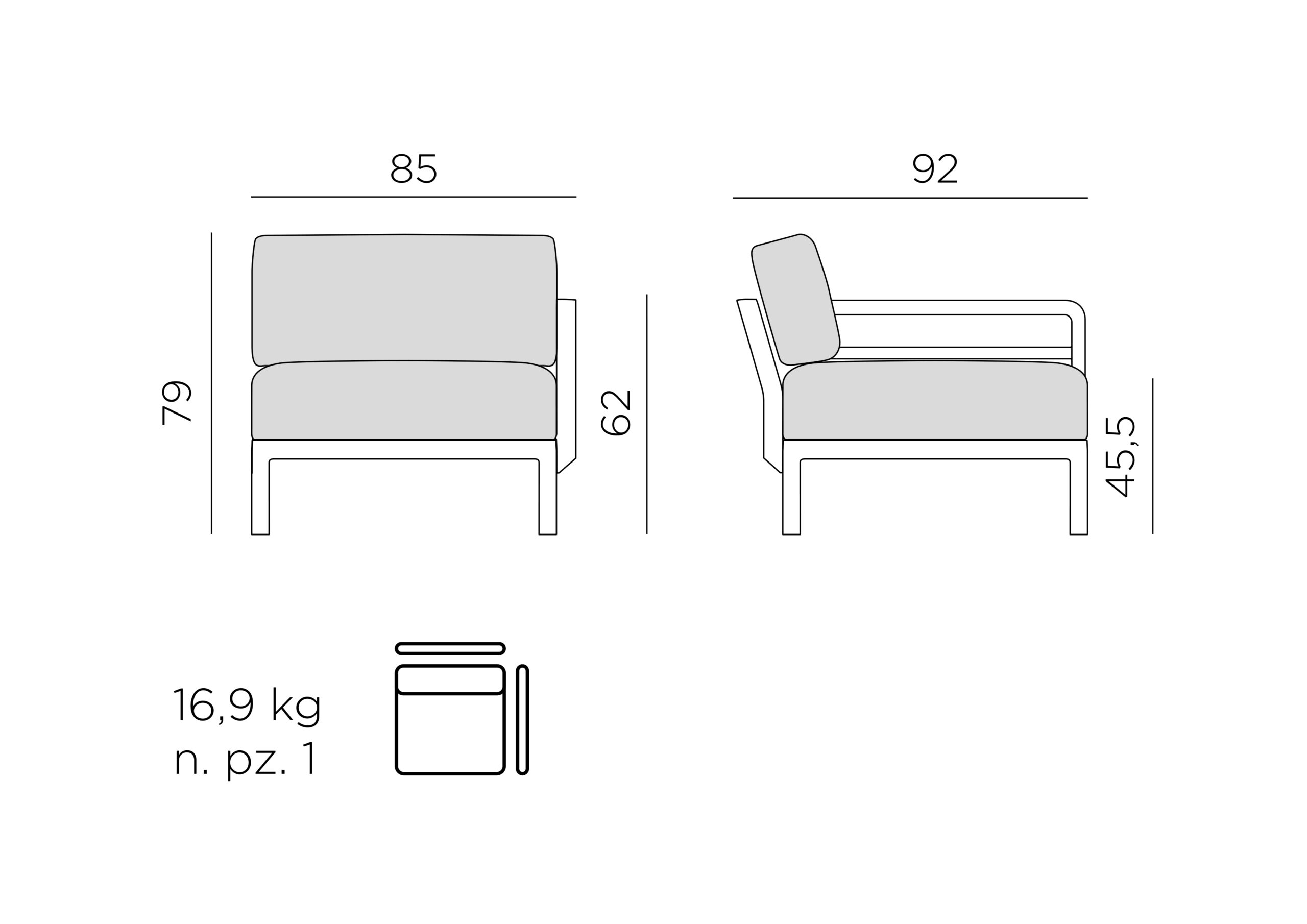 Uwagi: antypoślizgowe nóżki, matowe wykończenie, zdejmowane poduszki, może być częścią modułowej sofy ogrodowej Komodo.