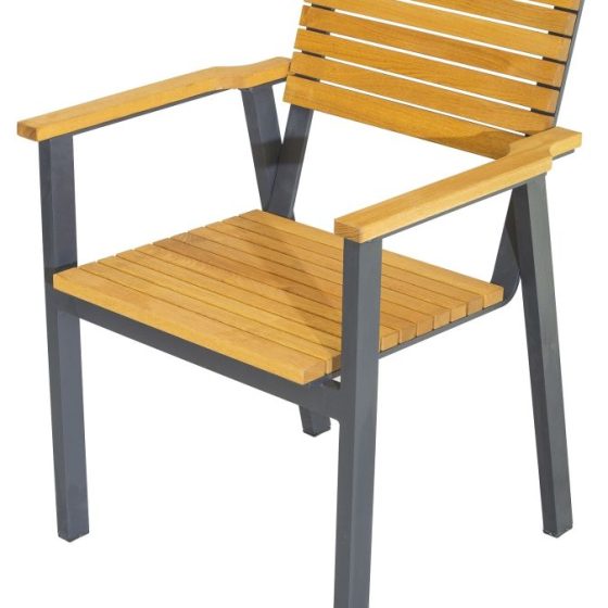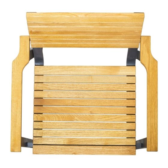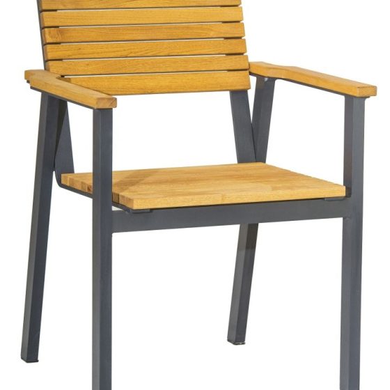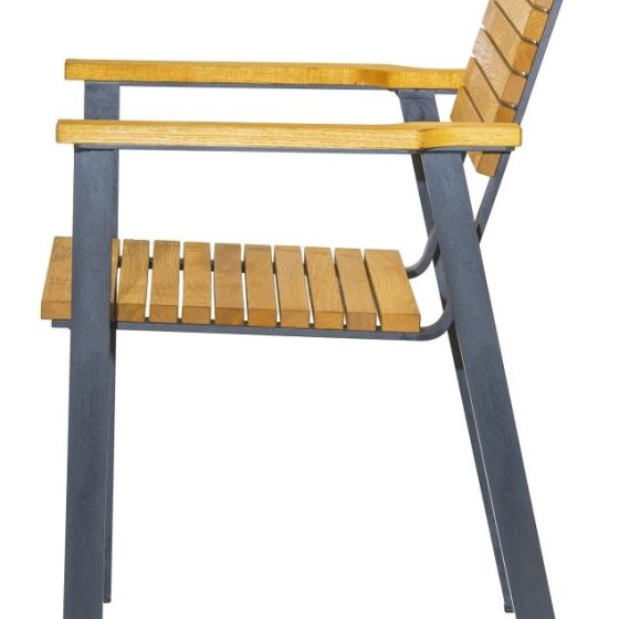 Fotel restauracyjny lub na taras z robini akacjowej o wysokiej twardości na stelażu metalowym, kolekcja jadalniana metalowo-drewniana. Idealny zarówno do jadalni w domu lub na tarasie oraz do obiektów gastronomicznych – restauracje, kawiarnie, karczmy, zajazdy, hotele. Produkt Polski.