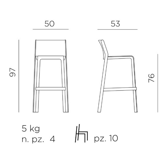 Nardi to producent, który kładzie duży nacisk na bezpieczeństwo i stabilność swoich wyrobów, a ma to kluczowe znaczenie w miejscach użyteczności publicznej. Siedzisko powstało w taki sposób, aby wytrzymać duże obciążenia, a antypoślizgowe nóżki zapewniają pewne oparcie na każdym rodzaju podłoża. To wybór, który gwarantuje doskonałą prezencję lokalu i zadowolenie klientów, którzy szukają wygody podczas spotkań przy barze czy wysokim stoliku.