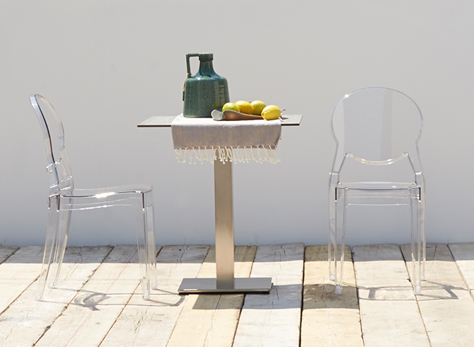 Krzesło wykonane z poliwęglanu o wysokiej odporności na zarysowania, uderzenia oraz działanie promieni UV. Materiał ten sprawia, że Igloo świetnie nadaje się do miejsc o dużym natężeniu ruchu, takich jak restauracje czy kawiarnie. - Nowoczesny design: