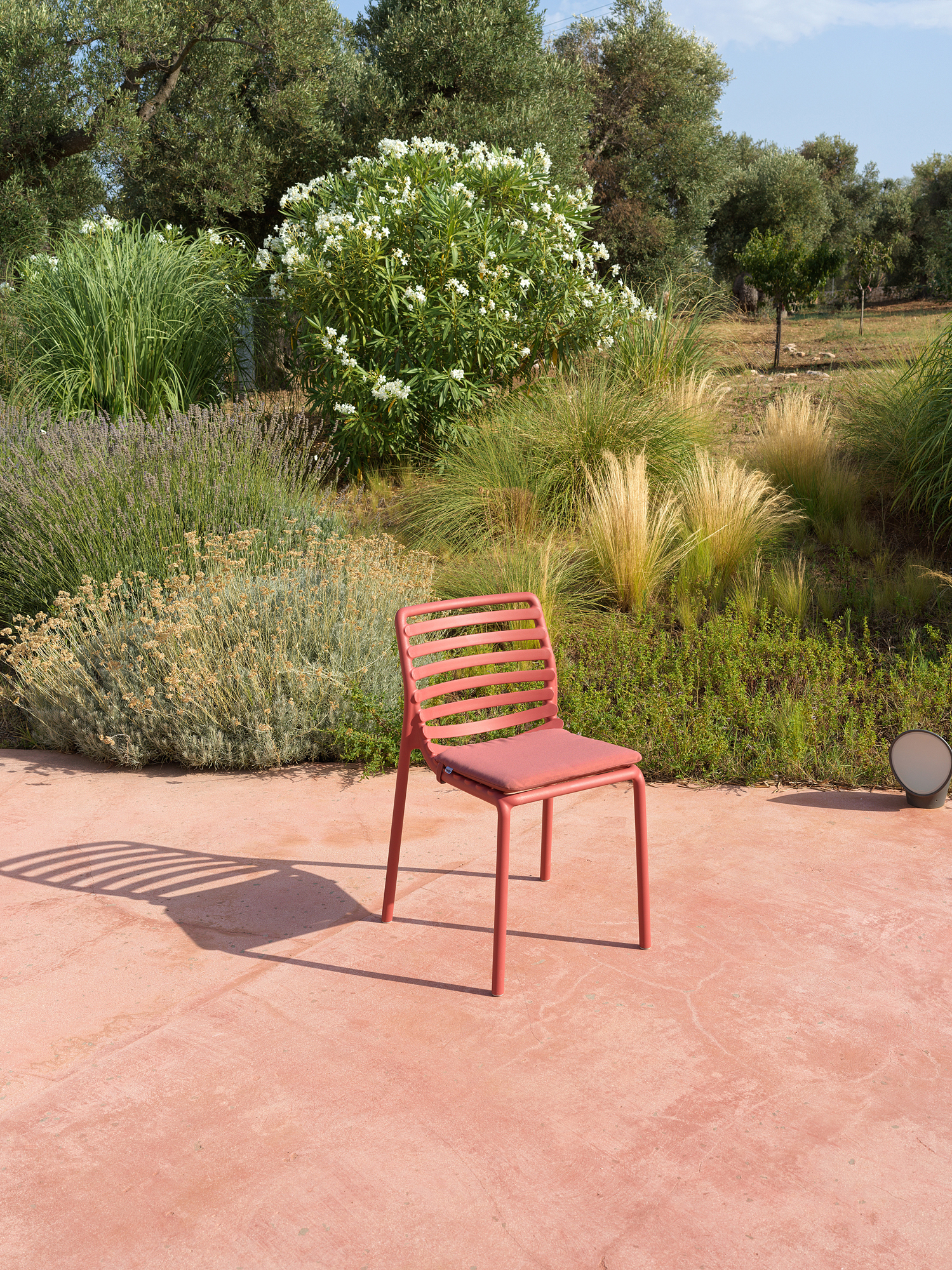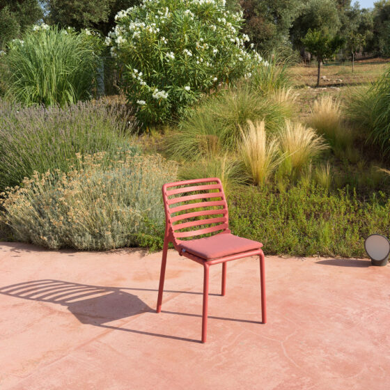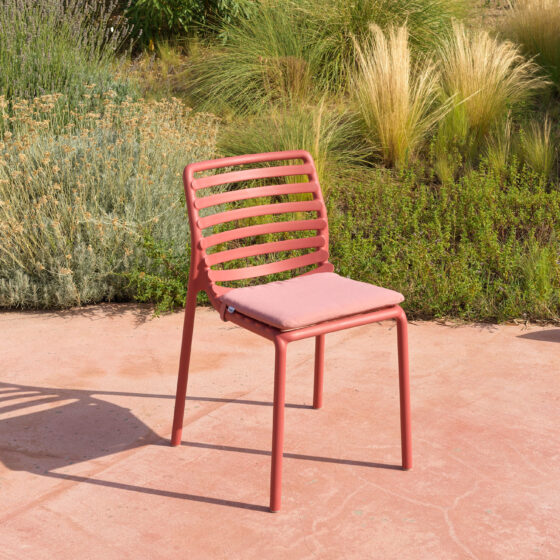 Krzesło Doga Bistrot w unikalnym kolorze Pera to propozycja dla projektantów i właścicieli tarasów, którzy chcą się wyróżnić za pomocą odważnej, świeżej kolorystyki. Wykorzystanie żywicy polipropylenowej z dodatkiem włókna szklanego gwarantuje, że mebel jest lekki, a jednocześnie niezwykle trwały i odporny na duże obciążenia. Kolorystyka jest trwała i odporna na działanie silnego słońca dzięki zaawansowanym filtrom UV zawartym w strukturze materiału. Krzesło posiada przyjemne, matowe wykończenie i ażurową formę, która zapewnia stały dostęp powietrza do pleców użytkownika. Ergonomiczny profil sprawia, że krzesło jest bardzo wygodne, oferując komfort zbliżony do znacznie większych modeli fotelowych.