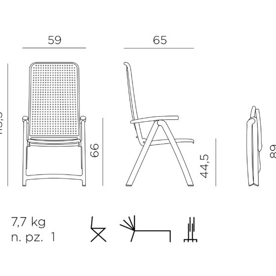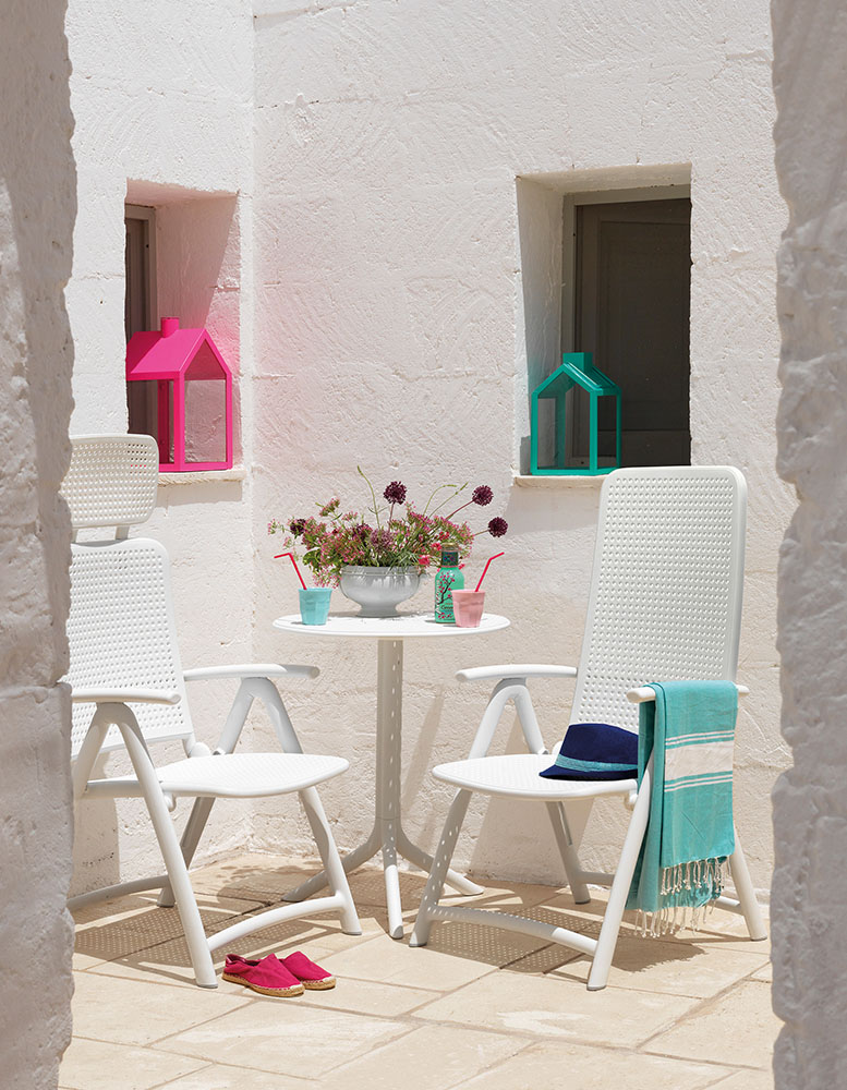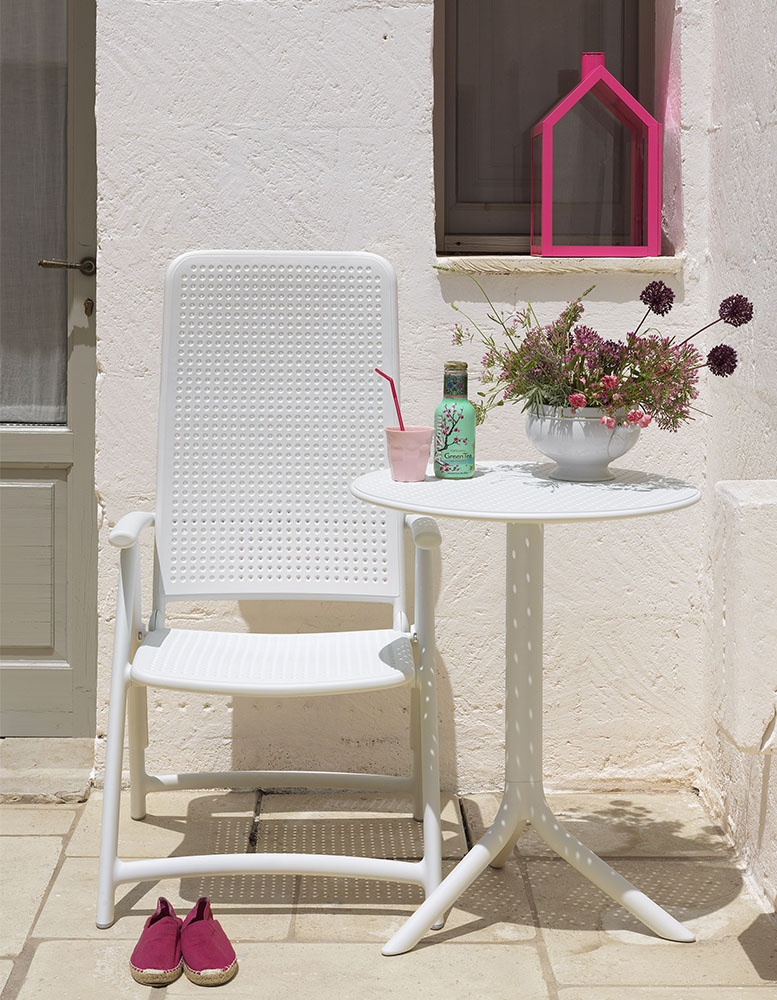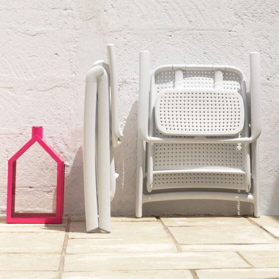 Wyjątkowa wygoda z regulacją oparcia i praktyczny system składania białego krzesła Nardi Darsena Bianco