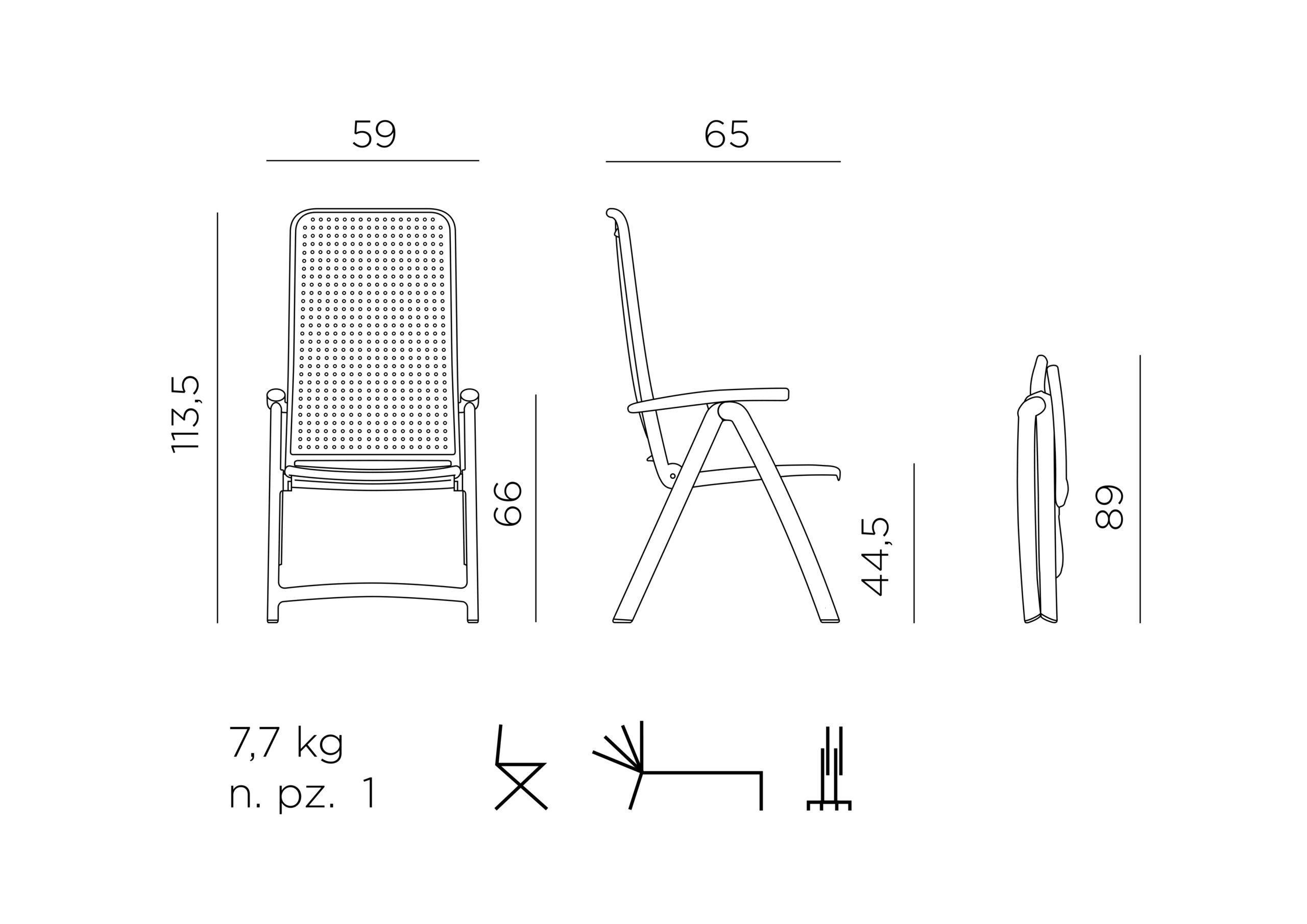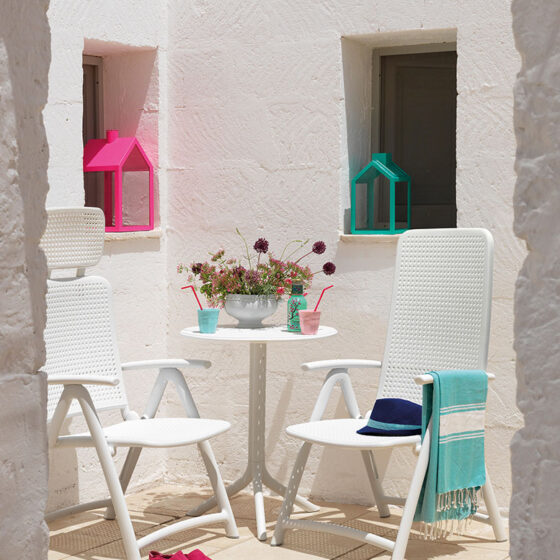 Krzesło Nardi Darsena Bianco oferuje aż cztery stopnie regulacji nachylenia oparcia, dzięki czemu w kilka sekund zmienisz je z wygodnego siedziska przy stole w komfortowy fotel do opalania. Ergonomiczny kształt oraz wysokie plecy dbają o optymalne podparcie kręgosłupa, pozwalając na pełne odprężenie w zaciszu własnego ogrodu. Mebel ten jest niezwykle praktyczny w codziennym użytkowaniu, ponieważ posiada system łatwego składania, co pozwala na oszczędność miejsca podczas przechowywania i transportu. Antypoślizgowe stopki chronią delikatne powierzchnie tarasowe przed zarysowaniami oraz gwarantują stabilność na mokrym podłożu przy basenie. Materiał jest w pełni recyklingowalny i wyjątkowo łatwy w czyszczeniu, gdyż gładka powierzchnia nie chłonie brudu i wymaga jedynie przetarcia wilgotną ściereczką bez żadnej konserwacji.