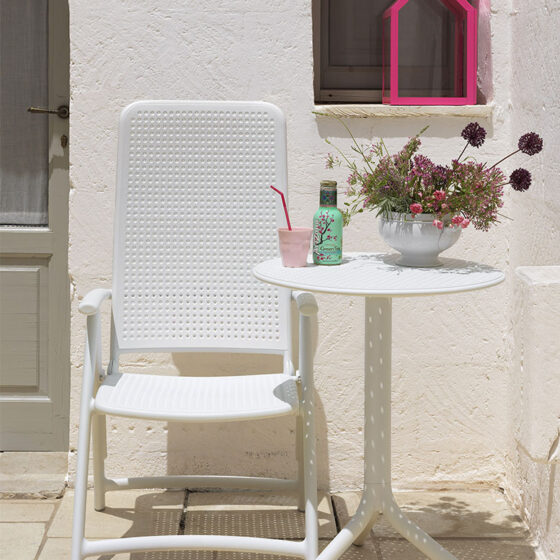 Rozkładane krzesło Nardi Darsena Bianco idealne do ogrodu i strefy relaksu