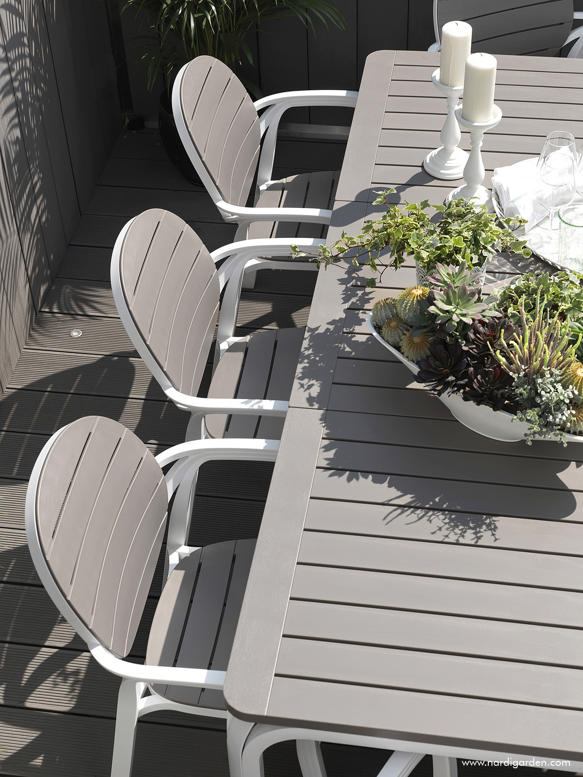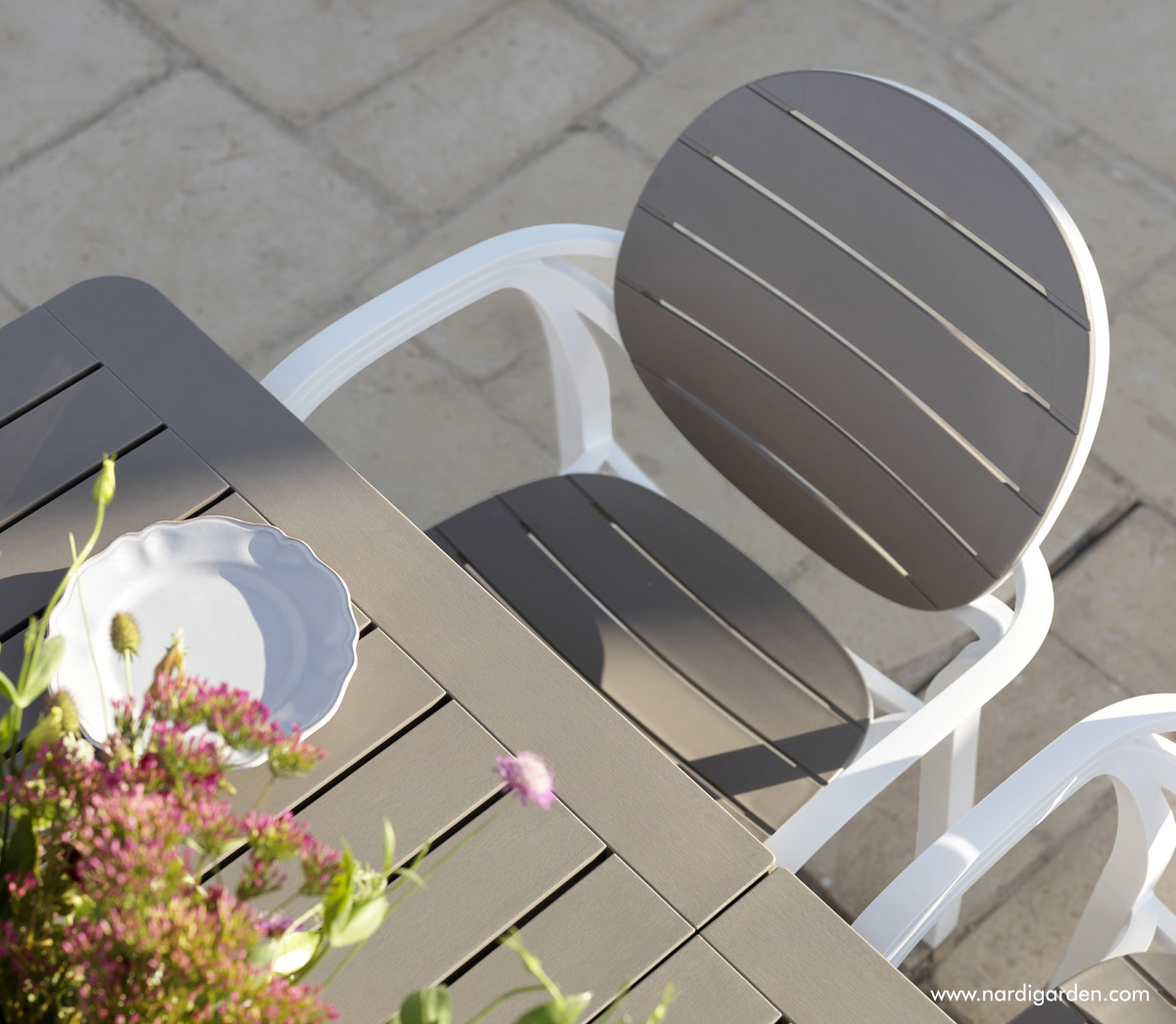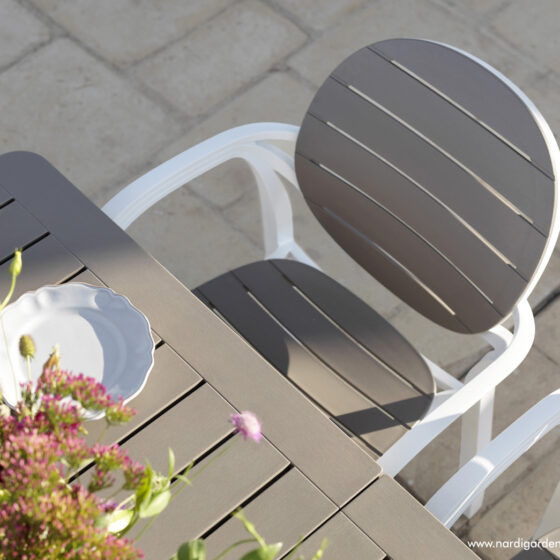 Krzesło ogrodowe z podłokietnikami – Nardi Palma Białe-Tortora na taras i balkon