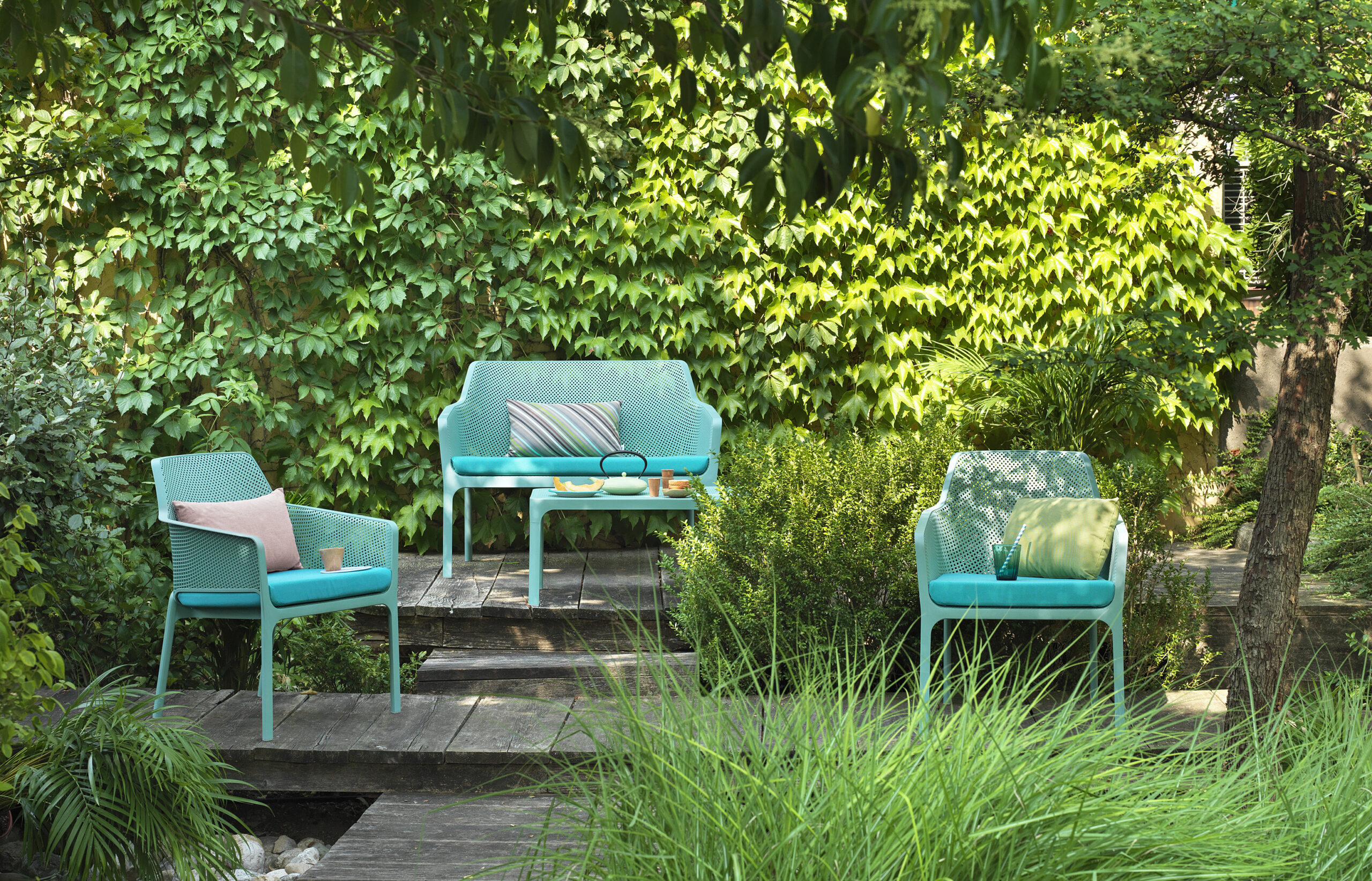 - Bogata paleta kolorów do wyboru, pozwala dopasować ławkę i meble z serii Net do dowolnej aranżacji.