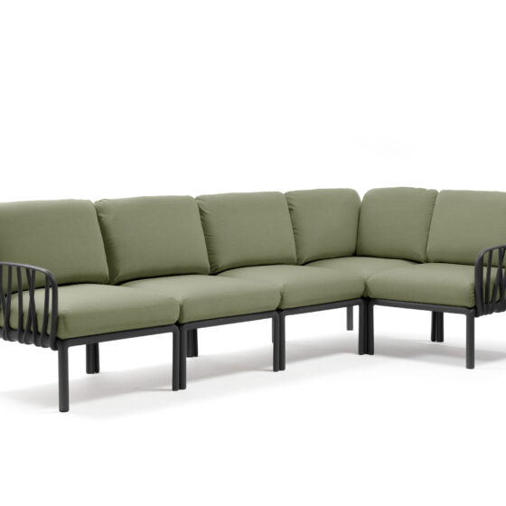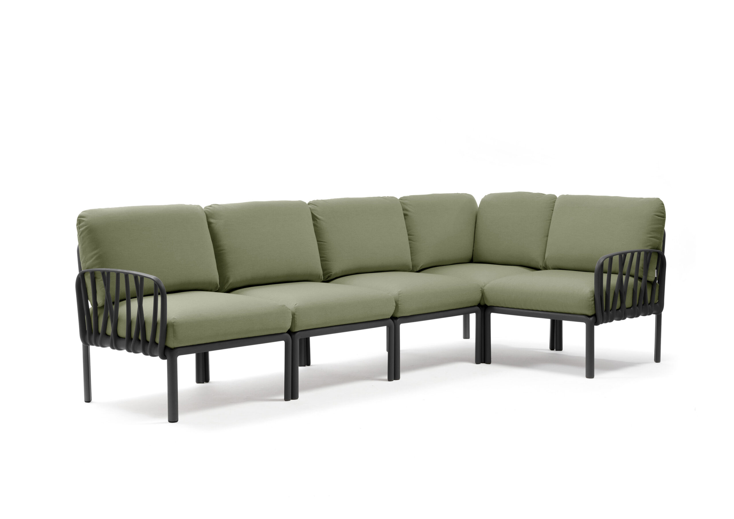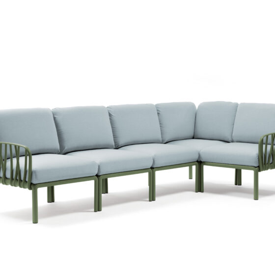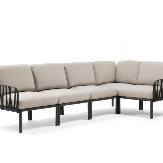 Komfort użytkowania jest absolutnym priorytetem dla Nardi, dlatego Komodo 5 został zaprojektowany z myślą o maksymalnym relaksie. Grube, miękkie poduszki o ergonomicznym kształcie zapraszają do zanurzenia się w beztroskim wypoczynku, zapewniając wsparcie i przyjemność nawet podczas długich godzin spędzanych na świeżym .