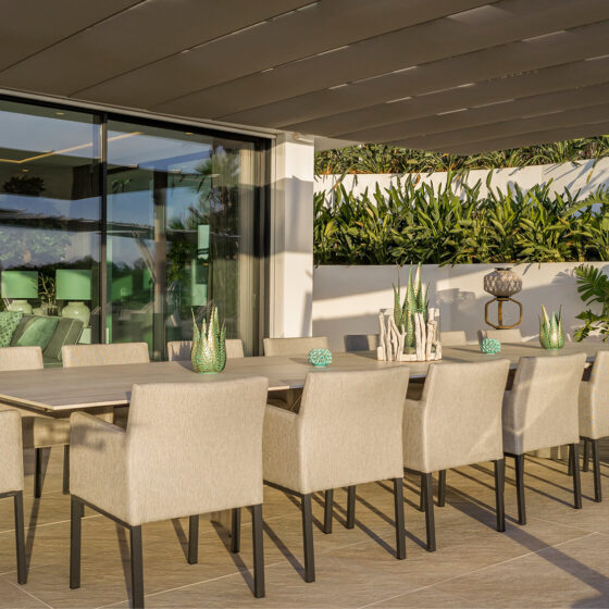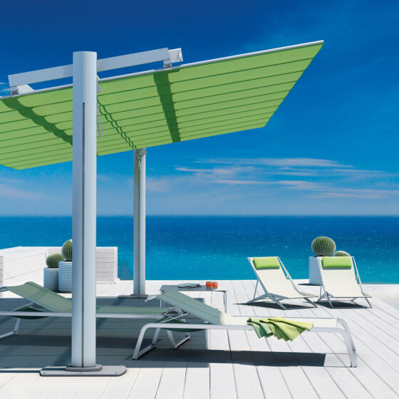 Flexy Large FIM to połączenie luksusu, nowoczesnej technologii i funkcjonalności, które sprawdzi się w każdej przestrzeni wymagającej skutecznej ochrony przed słońcem i deszczem.