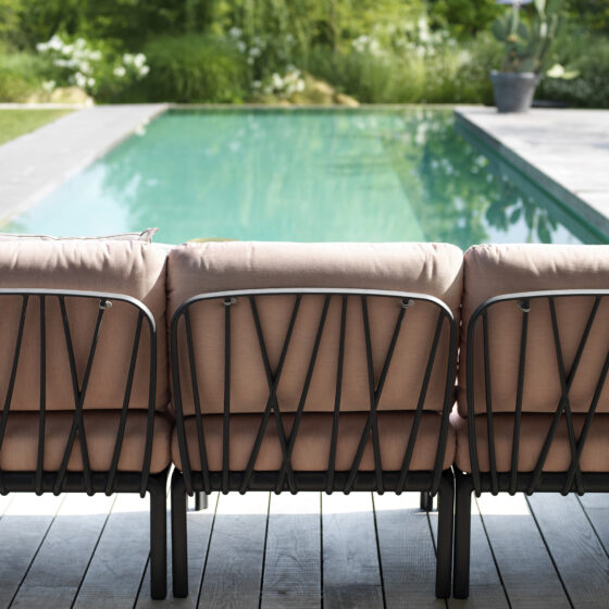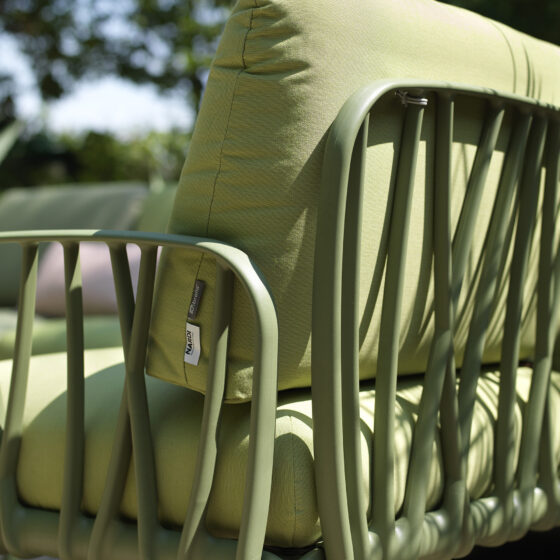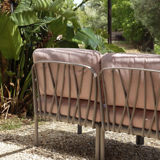 Ażurowa konstrukcja oparcia, inspirowana splotami gałęzi drzew, to nie tylko kwestia estetyki, ale też doskonałej cyrkulacji powietrza. Dzięki temu wypoczynek w upalne dni jest jeszcze przyjemniejszy. To mały fragment większej całości, który nadaje meblom lekkości i nowoczesnego charakteru, sprawiając, że Twój taras zaczyna przypominać luksusowy włoski kurort.