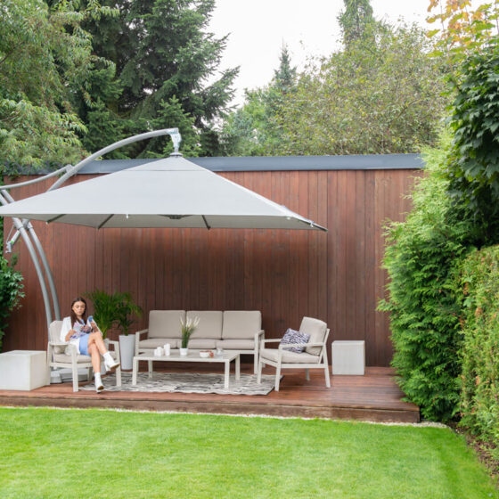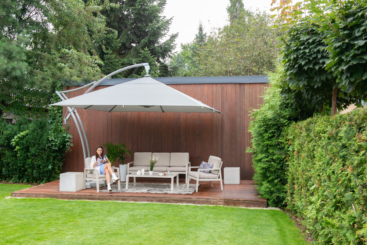 Parasol ogrodowy Ibiza Quattro kwadratowy 3,5 x 3,5 m – elegancja i trwałość w Twoim ogrodzie