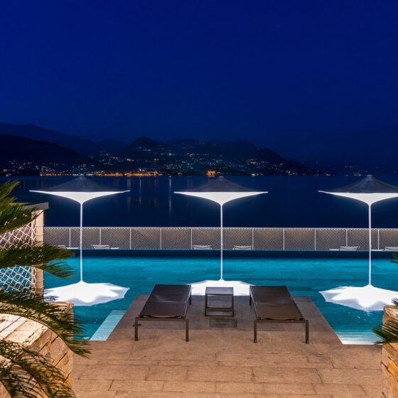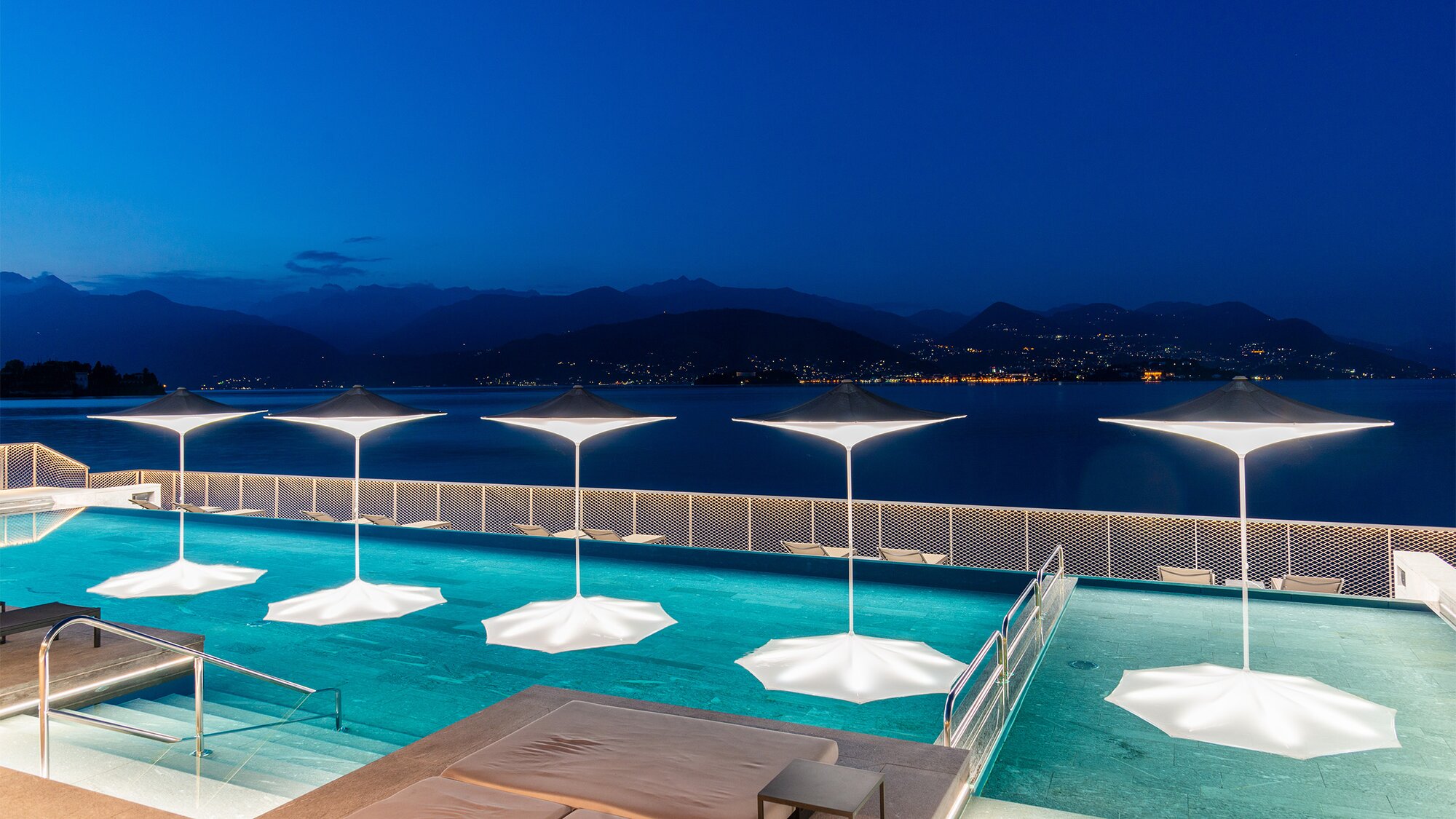 - Baseny i spa – ochrona przed słońcem i klimatyczne oświetlenie sprawiają, że parasol doskonale sprawdzi się w strefach relaksu.