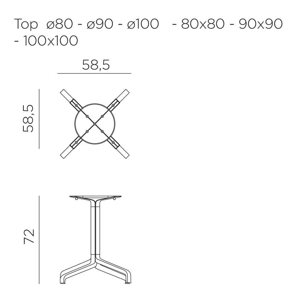 Przeznaczony do blatów: 80 x 80 cm, 90 x 90 cm, 100 x 100 cm, Ø 80 cm, Ø 90 cm, Ø 100 cm