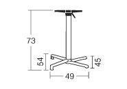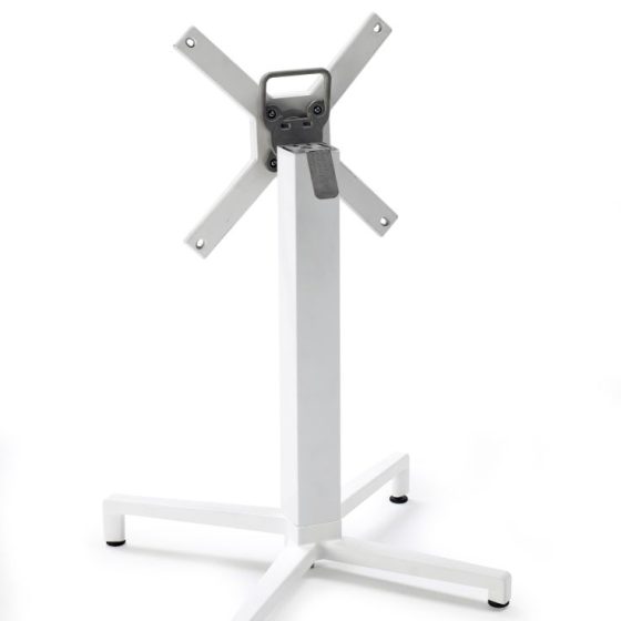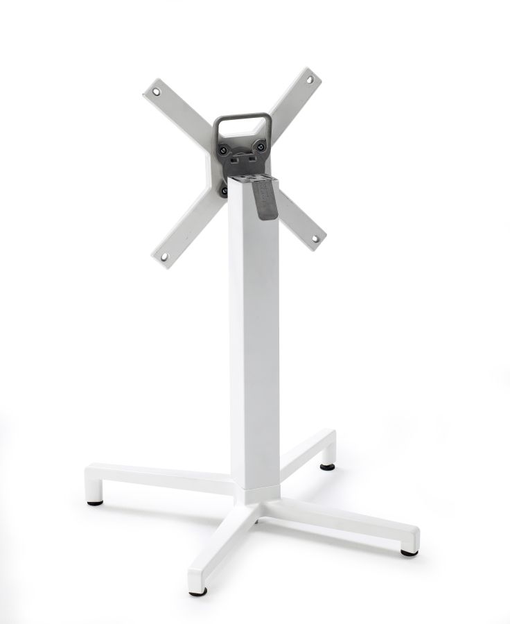 Podstawa do stołu DOMINO z uchylnym mocowaniem blatu w całości wykonana z aluminium. Podstawa stolika o kolumnie kwadratowej dzięki zastosowaniu uchylnej głowicy do mocowania blatu oraz wyprofilowanych nóżek ułatwia przechowywanie lub magazynowanie stołów w restauracjach, kawiarniach, hotelach lub na ogródkach letnich. Mechanizm składania z uchwytem. Posiada regulowane stopki do poziomowania. Do użytku wewnętrznego oraz zewnętrznego.
