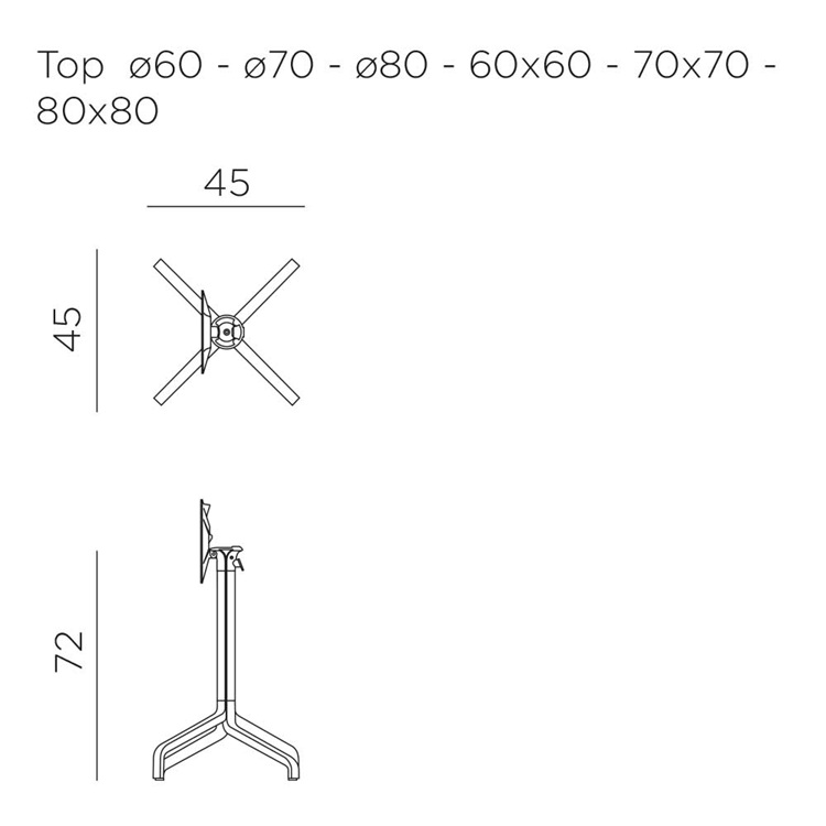 Przeznaczony do blatów: 60 x 60 cm, 70 x 70 cm, 80 x 80 cm, Ø 60 cm, Ø 70 cm, Ø 80 cm