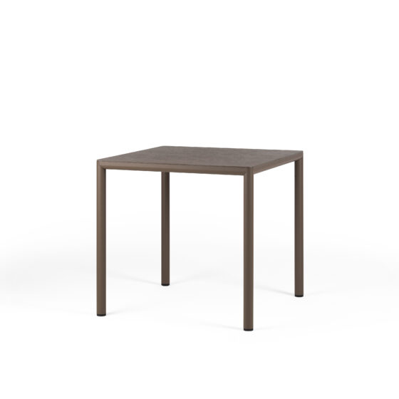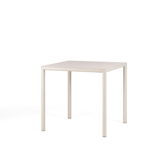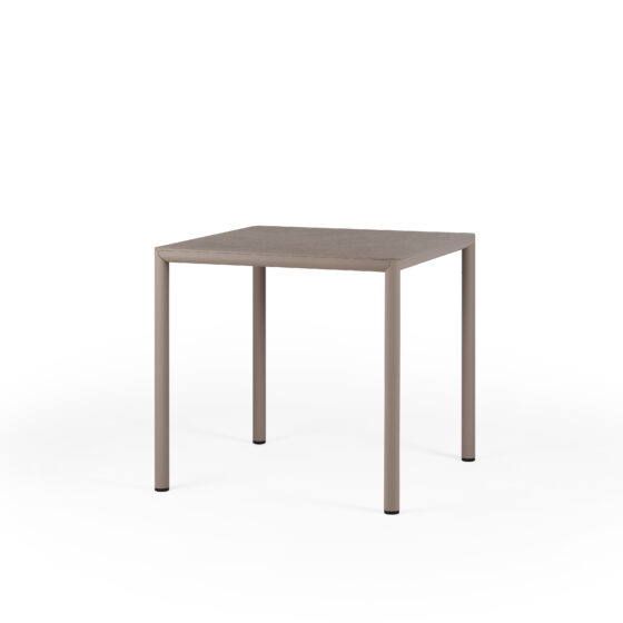 Jego matowe wykończenie blatu i nóg dodaje mu subtelnej elegancji, która harmonizuje z otoczeniem, zamiast je dominować. Wykonany z wysokiej jakości laminatu HPL Solid Core na blacie oraz z powlekanego aluminium w nogach, jest to mebel stworzony, aby sprostać wyzwaniom codziennego użytkowania. Materiały te zapewniają nie tylko atrakcyjny wygląd, ale przede wszystkim odporność na warunki atmosferyczne i łatwość w utrzymaniu.