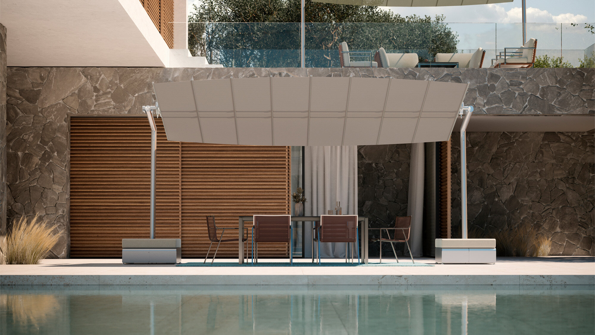 Modułowa konstrukcja – możliwość łączenia kilku modułów w większe zadaszenie, co pozwala na dopasowanie do różnych przestrzeni.